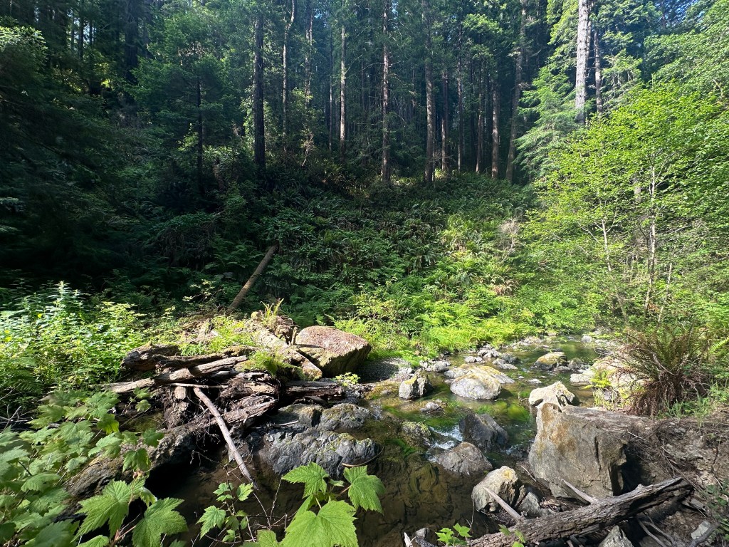 Fern Canyon (Van Damme State Park) – Mostly flat, unpaved roll through a vegetated valley with a creek. Trail conditions may be dependent on recent floods, as the trail can wash out. The state park has two accessible tent sites, but I wouldn’t recommend staying here—they are located in the middle of a loop and aren’t very quiet/private.